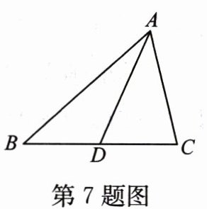 7. 如图,已知 AD 是△ABC 的中线,△ABD 的周长比△ADC 的周长多 4,若 AB= 13,则 AC 的长是 (