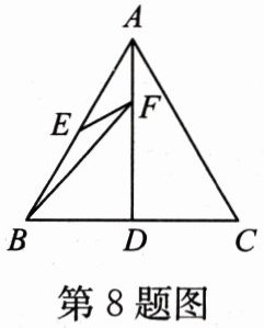 8. 如图,已知 $ \triangle ABC $ 是等边三角形,点 $ D $,$ E $ 分别是边 $ BC $,$ AB $ 的中点,$ AD = 6 $,点 $ F $ 是线段 $ AD $ 上的动点,则 $ BF + EF $ 的最小值为______.