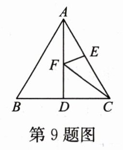 9. 如图,等边三角形 $ ABC $ 的边长为 4,$ AD $ 是边 $ BC $ 上的中线,$ F $ 是边 $ AD $ 上的动点,$ E $ 是边 $ AC $ 上一点. 若 $ AE = 2 $,当 $ EF + CF $ 取得最小值时,则 $ \angle ECF $ 的度数为______$^\circ$.