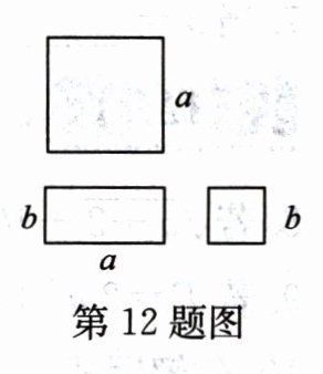 12. 如图,这三种规格的卡片共有9张,其中边长为$a$的正方形卡片有4张,边长为$b$的正方形卡片有1张,长、宽分别为$a,b$的长方形卡片有4张.现要用这9张卡片拼成一个大正方形,则这个大正方形的边长为