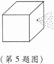 5. 通常1cm3的空气中约有2.7×1019个空气分子,在一个容积为1cm3的小方盒上开一个小孔(如图所示),如果每秒让1亿个空气分子逸出,要经过9000年小方盒中的空气分子才能全部逸出。假如有同样数目的砖块,它们不仅能将地球铺满,而且其厚度可达120km。通过上面的数据,对于构成物质的分子的数目和体积,你的观点是