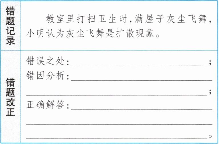|错题记录|教室里打扫卫生时,满屋子灰尘飞舞,小明认为灰尘飞舞是扩散现象。|