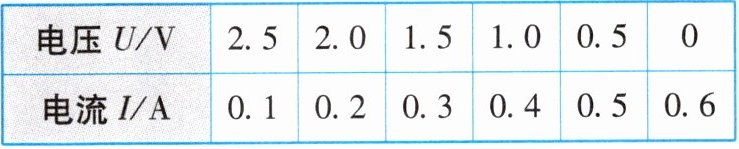 |电压U/V|2.5|2.0|1.5|1.0|0.5|0|