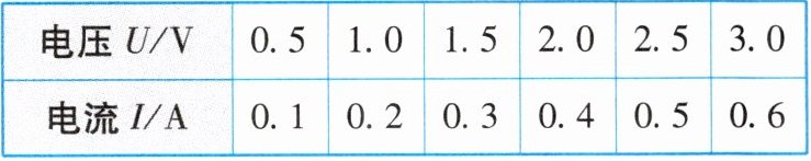 |电压U/V|0.5|1.0|1.5|2.0|2.5|3.0|