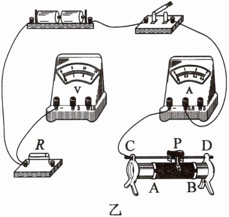 (2)现要求滑动变阻器滑片向左移动时,电流表示数变大,请你按照要求,用笔画线代替导线,完成图乙中实验电路的连接。