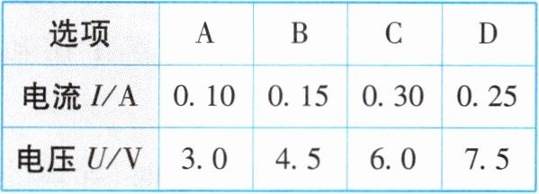 2. 下表是晓红在“探究通过定值电阻的电流与其两端电压的关系”的实验中得出的四组数据,由所学知识可知,晓红记录的数据中,有错误的一组是(