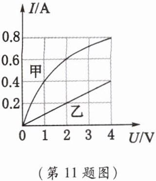 11. 物理兴趣小组分别利用电阻 R 和小灯泡 L 探究电流与电压的关系,并将实验数据画在如图所示的坐标系上。由图像可知(