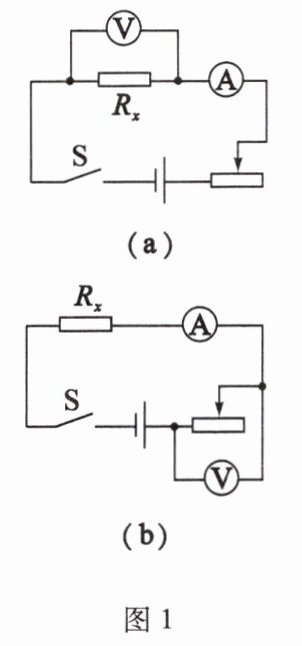 (3)老师发现某一小组的实验电路图如图 1(b)所示,原来他们认为 $ R_x $ 两端的电压可以等于电源(两节干电池串联)电压 $ 3 V $ 减去电压表的示数。在老师的指导下,他们闭合开关后实测了电源两端的电压,发现其值小于 $ 3 V $,说明他们的方案是______(填“可行”或“不可行”)的。