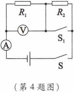 4. 如图所示,电源电压不变,当开关S、$S_1$均闭合时,电压表的示数是6V,则电源电压是