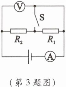3. 如图所示,电源电压保持不变,开关S断开后,电阻$R_1$与电阻$R_2$