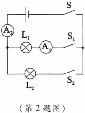 )A.电流表$A_2$测通过灯$L_2$的电流