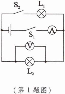 1. 如图所示,电源电压保持不变$,L_1$和$L_2$是两个相同的小灯泡。先闭合开关$S_1,$记录两电表示数;再闭合开关$S_2,$电流表和电压表的示数变化情况是(