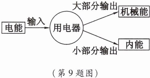 9. 某用电器工作时的能量流向如图所示,该用电器可能是(