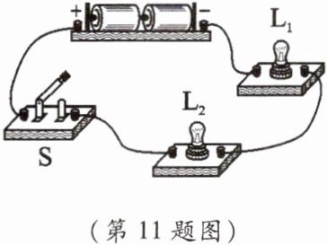 11. 如图所示的电路中,将两个规格不同的灯泡 $ L_{1} $ 和 $ L_{2} $ 串联接入电路,闭合开关 S 后,下列说法正确的是(