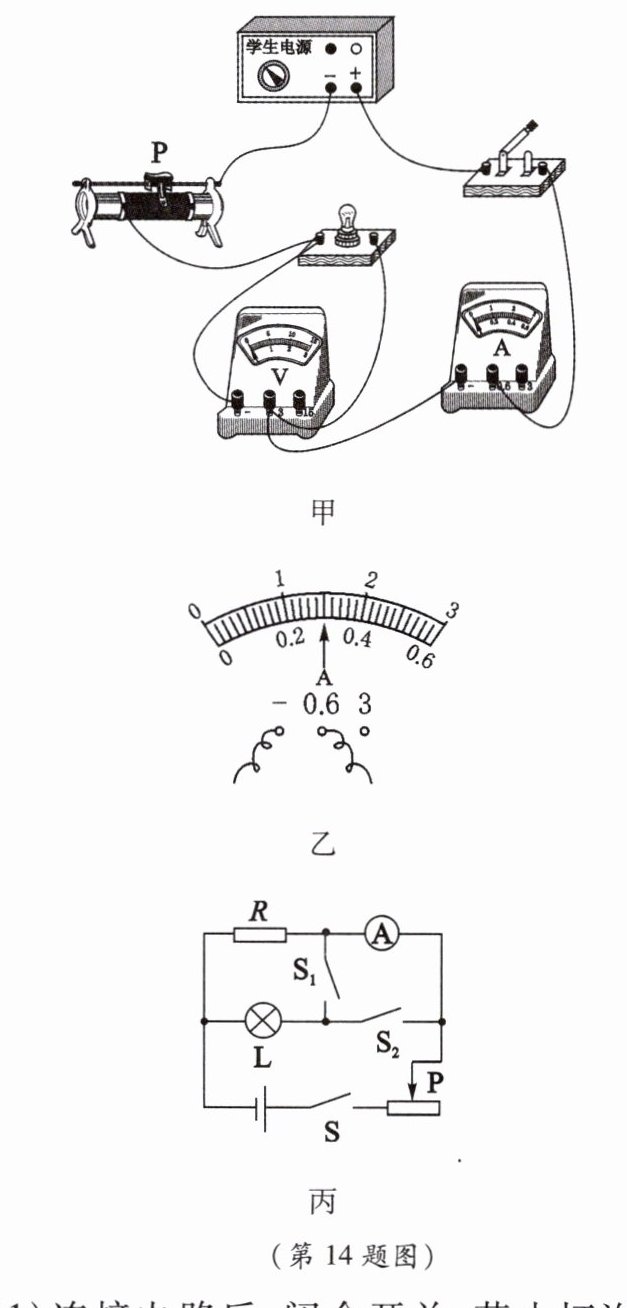 14. 小梦所在探究小组在做“测量小灯泡的额定功率”的实验(小灯泡的额定电压 $ U_{额} = 2.5 \, V $,灯丝电阻阻值不变)。