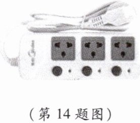 14. 如图所示是人们日常生活和工作中经常使用的一种插线板。现在市场上有一些劣质插线板,经质检部门检查发现,部分劣质插线板电源线芯线比合格产品细。请根据焦耳定律解释使用这种插线板将会存在什么隐患。