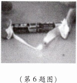 6. 如图所示,某同学将一张细条状铝箔纸的两端分别压在干电池的正、负极上,发现铝箔纸发热并燃烧。关于该实验的下列分析正确的是(