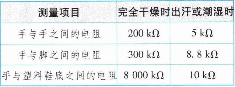 19. 现代家庭电器化程度越来越高,用电安全成了一个十分突出的问题。下表提供了一组人体电阻数据: