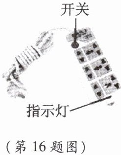 16. 如图所示是常用的带有多个插孔的插排。小明家插排的指示灯已经损坏,但闭合开关后插孔上连接的用电器仍可以正常工作。某天小明家装修时将切割机的插头插入插排,切割机工作时,家中的空气开关出现了“跳闸”现象。下列说法正确的是(