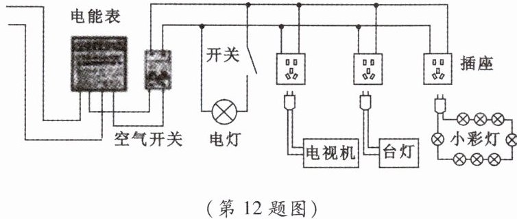 12. 小亮家的电路简化后如图所示,观察该电路,下列说法正确的是(