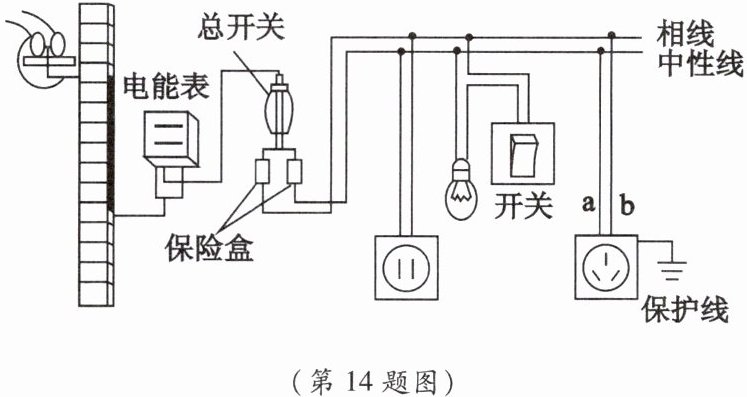 14. 如图所示是家庭电路示意图,下列说法正确的是(