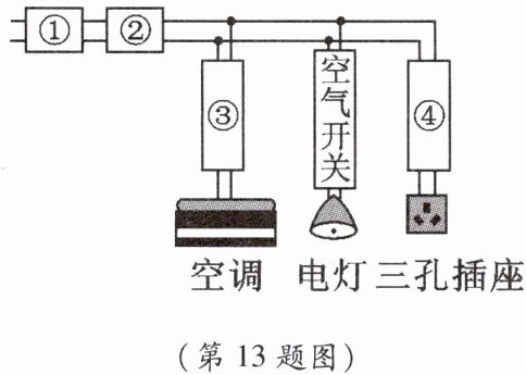 13. “安全用电,珍爱生命”是同学们应有的意识。小华家的配电系统如图所示,关于空气开关、电能表和漏电保护器的安装位置,下列说法不正确的是(