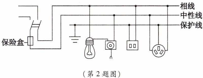 2. 如图是小明设计的家庭电路的电路图,下列对此电路图的分析错误的是 (