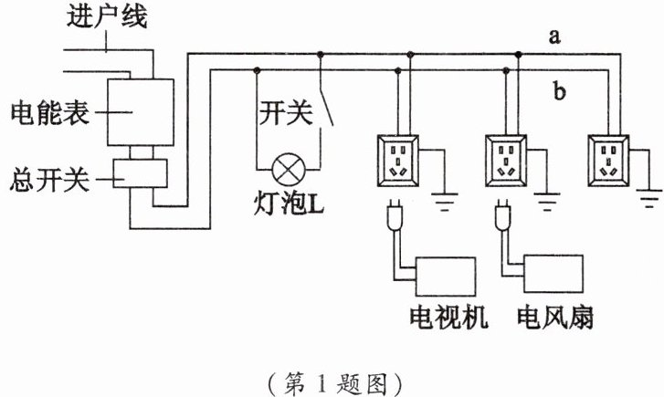 1. 如图所示为家庭电路的简化电路图,若该电路中各处的连接都是正确的,则关于该家庭电路的说法正确的是 (