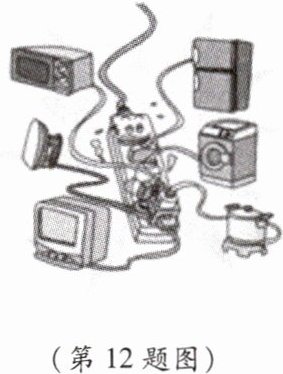 12. 如图所示,漫画形象地表现出插座的“不堪重负”,这是因为家庭电路中接入的用电器过多时会导致 (