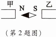 2. 在两个磁体的中间有一小磁针,静止时如图所示,下列说法正确的是