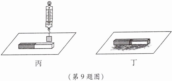 C.将丙实验中的条形磁体在挂有铁块的弹簧测力计下从左向右移动
