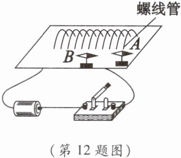 12. 如图所示,在“探究通电螺线管外部磁场方向”的实验中: