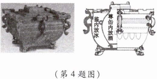 4. 曾侯乙墓曾出土过一种特殊的铜冰鉴式保温器,它是保温瓶的始祖。这种保温器分为里外两层,外为一方鉴,内装一方壶。方鉴的盖中有方孔,刚好套在内方壶的口上。盛夏之时,方鉴盛冰,内方壶盛食物或冰冻酒水。关于保温器中蕴含的物理知识,下列说法正确的是(