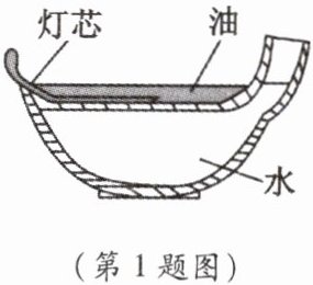1. 如图是古代省油灯的示意图。它下层盛水,能减慢上层油的消耗。点灯后,水在升温的过程中(