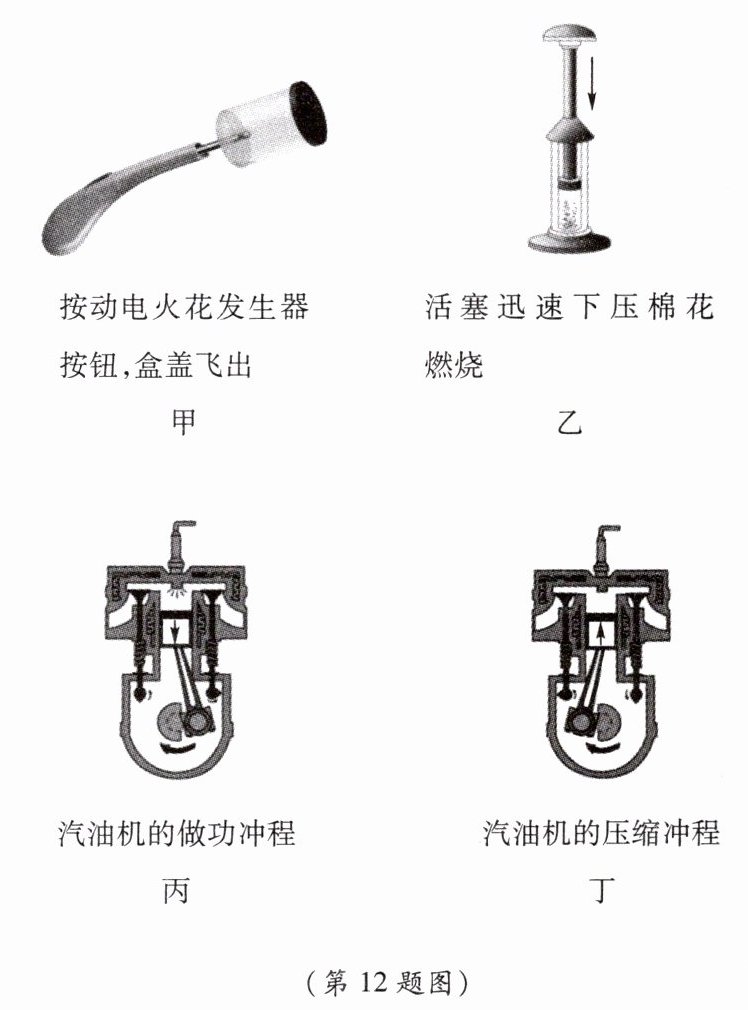 12. 水壶中的水烧开后,壶盖会向上跳动,以下四个事例中能量转化与之相同的是(