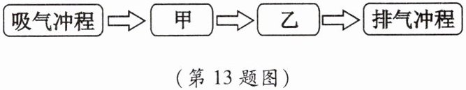 13. 下面的流程图可以用来说明单缸四冲程汽油机的一个工作循环,关于图中甲、乙的叙述正确的是(