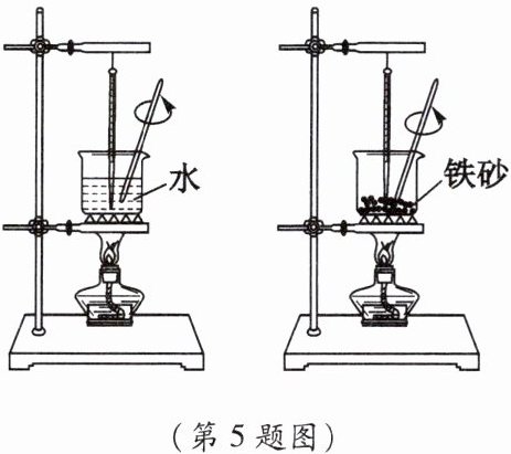 5. 如图所示,用相同的加热装置同时给质量相同的水和铁砂加热,水和铁砂吸收热量的多少是通过