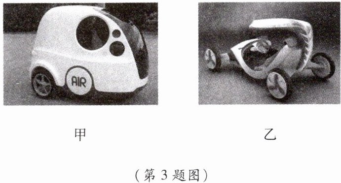 3. 如图甲、乙所示分别是我国研发的首款新型空气动力汽车和小型低碳化未来汽车。甲车利用压缩空气膨胀推动活塞做功提供动力,这种车在开车时将空气的