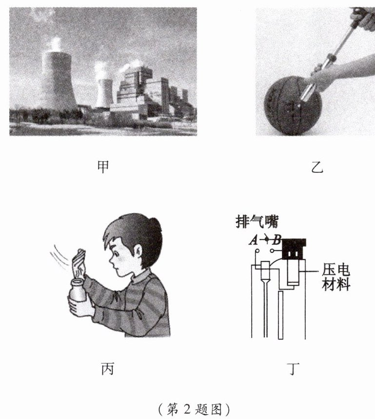 D.图丁中气体打火机按下打火按钮时,会产生电火花点燃燃料,把电能转化为化学能