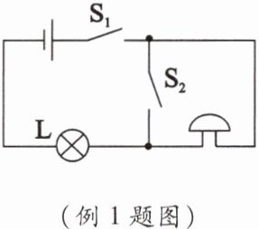 解析:开关$S_1$和$S_2$都闭合时,电流不通过电铃,故灯亮,但电铃不响。