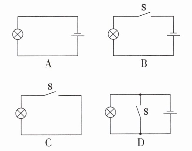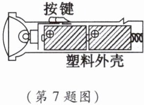 7. 手电筒的结构如图所示,按下按键时,电路接通,小灯泡发光。该手电筒的电路图正确的是(