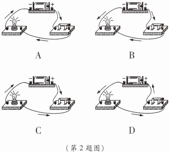 2. 如图所示,箭头表示电流的方向,其中正确的是(