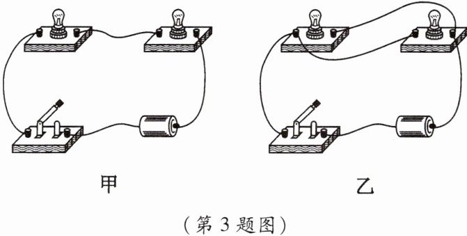 3. 如图所示的甲、乙两个实物电路中,两个灯泡的接法(
