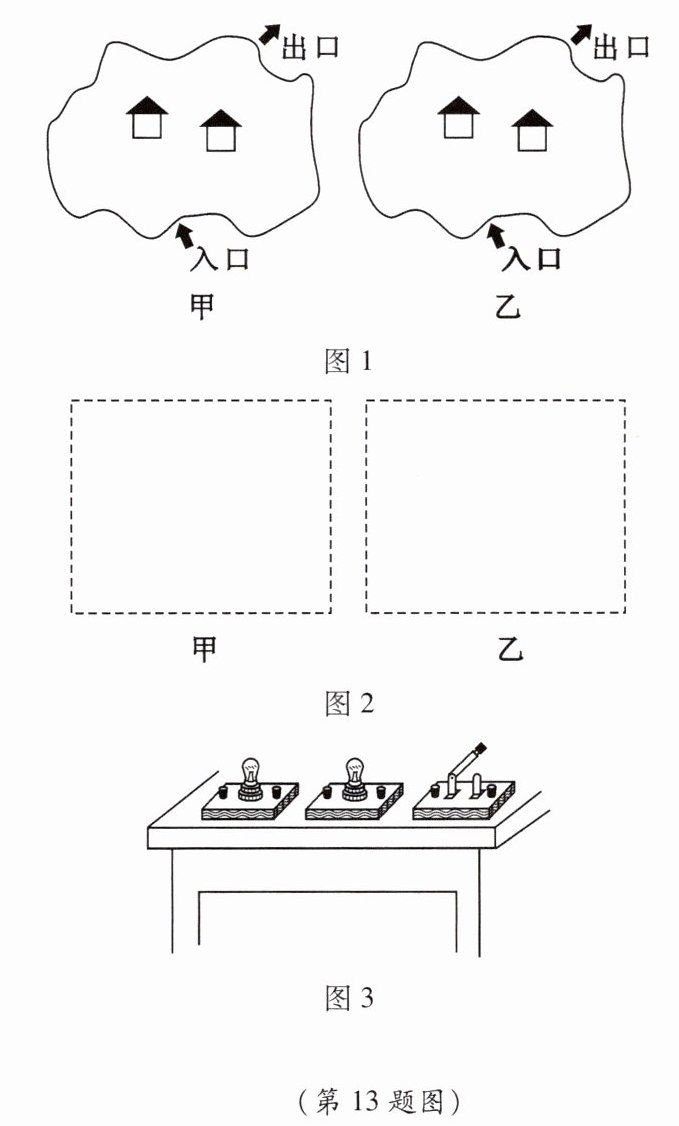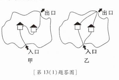 13. (1)如图1所示,某公园有两个游览点(用亭子表示),其游览的入口和出口都已确定。