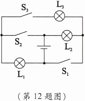 时,灯$L_1$和$L_2$组成并联电路。若要使灯$L_2$亮、灯$L_1、$$L_3$不亮,则应闭合开关S₁