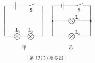 (2)由此联想到我们所学的电路知识。现有两个小灯泡和相应的电器元件,怎样连接使它们都亮起来?