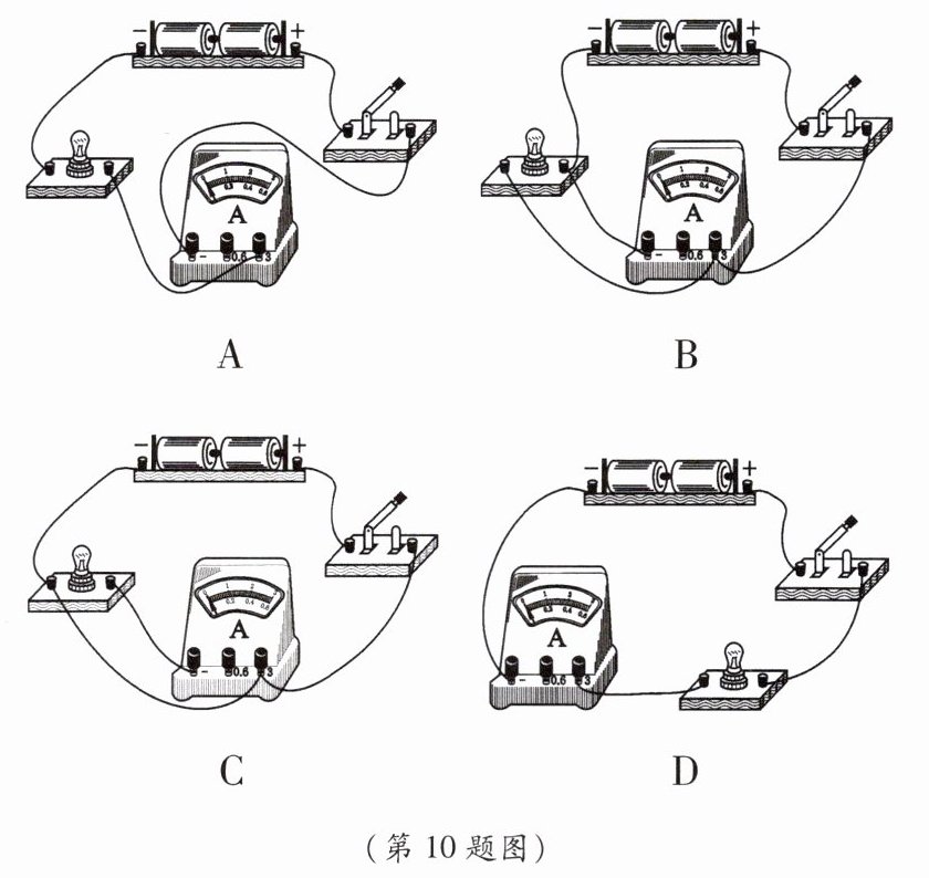 10. 小梦在实验室连接了四个实物电路,如图所示,其中电流表的接法正确的是(