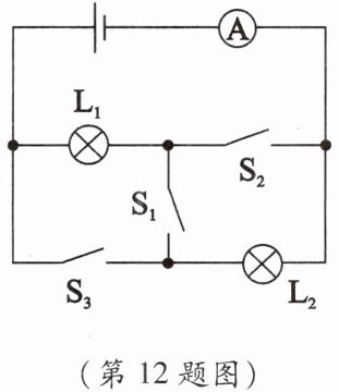 12. 如图所示,若要使灯$L_1$、$L_2$串联,则应闭合开关