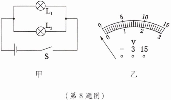 8. 小阳设计了如图甲所示电路图探究并联电路的电压规律,请你回答下列问题。