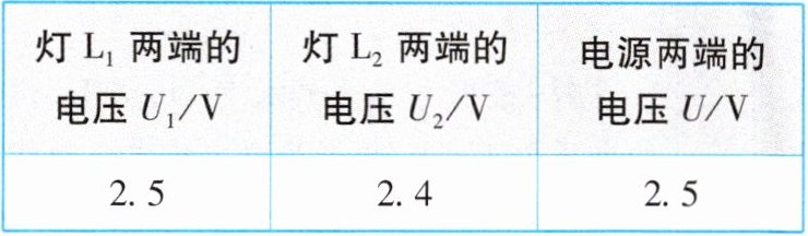 (3)正确连接电路后,若测得灯$L_{1}$两端的电压为2.5V,则灯$L_{2}$两端的电压是